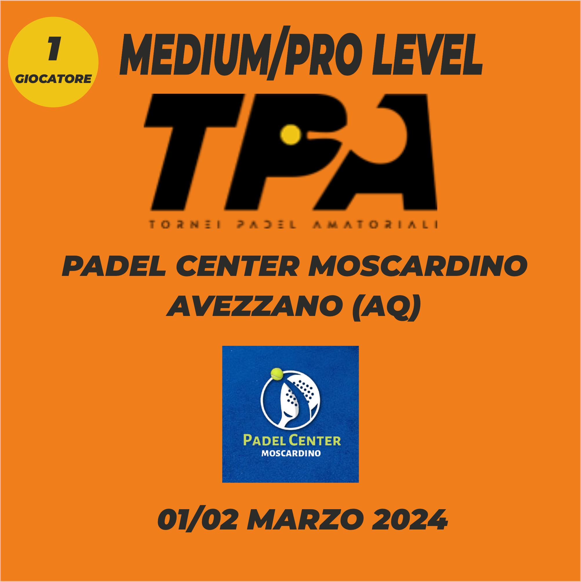 MEDIUM/PRO LEVEL - ISCRIZIONE 1 GIOCATORE - OPEN "PADEL CENTER MOSCARDINO" AVEZZANO (L'AQUILA)