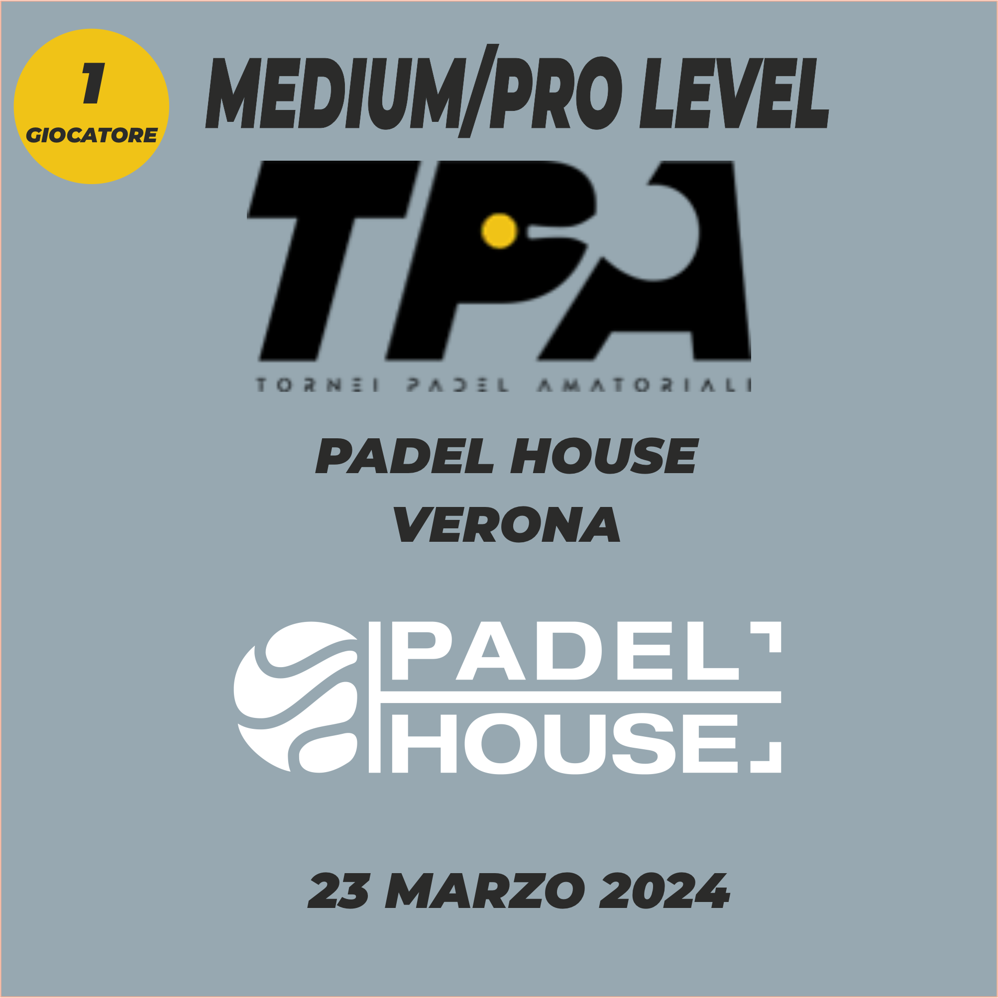 ISCRIZIONE 1 GIOCATORE - OPEN "PADEL HOUSE" 3a EDIZIONE VERONA