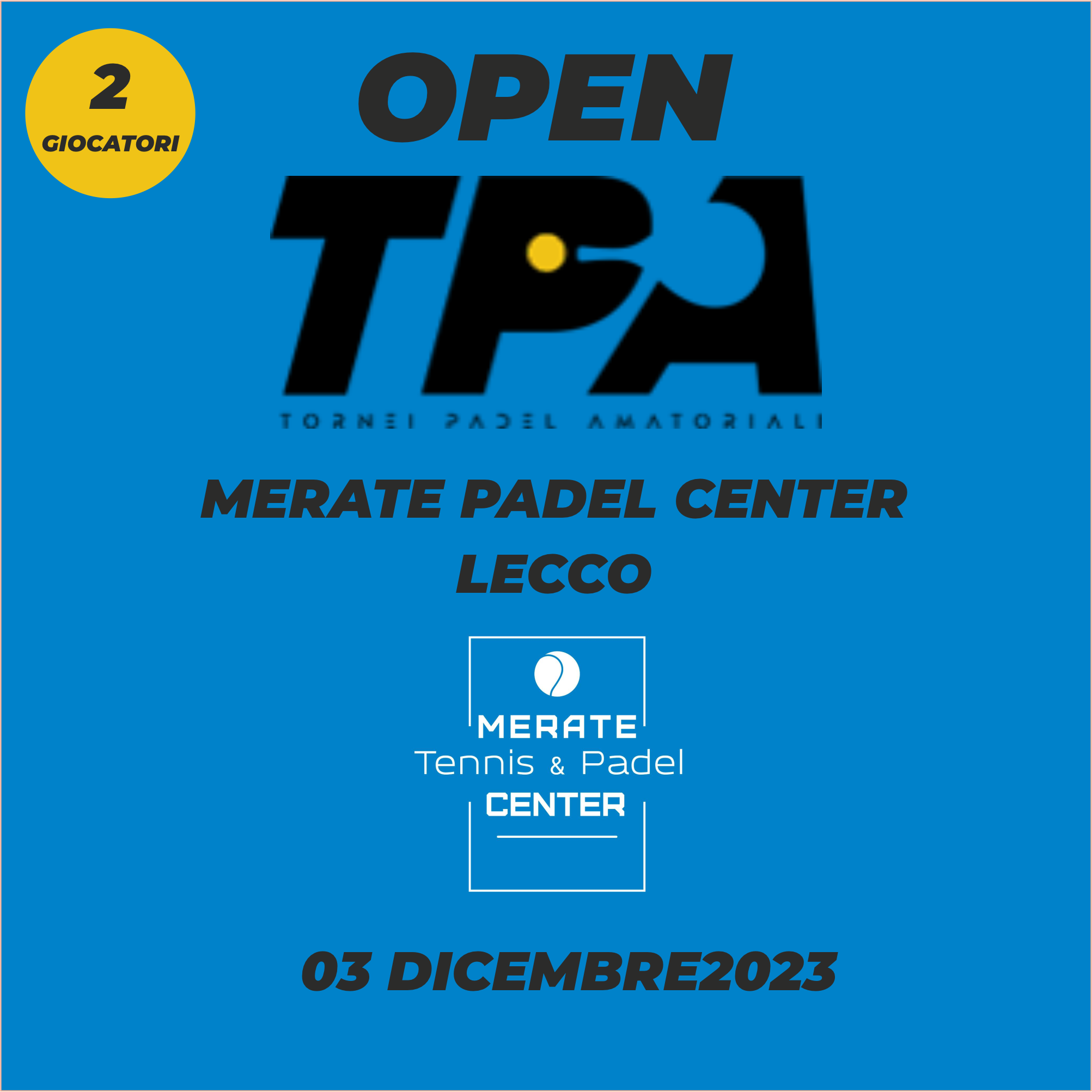 ISCRIZIONE 2 GIOCATORI - OPEN "MERATE PADEL CENTER" MERATE