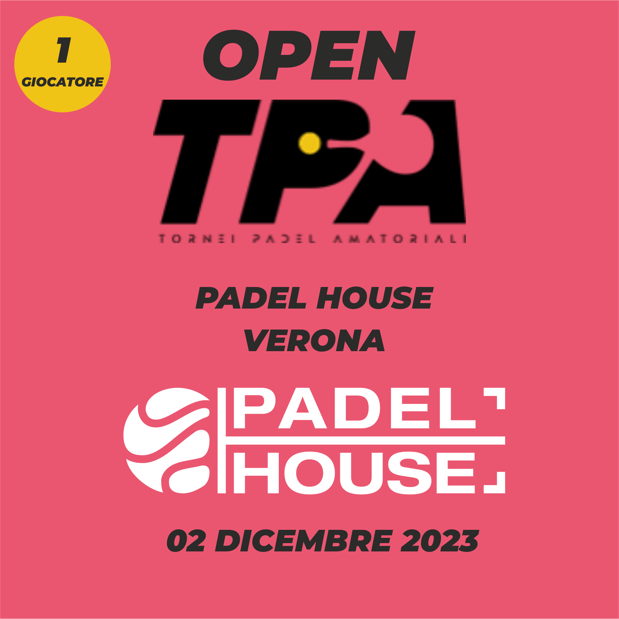 ISCRIZIONE 1 GIOCATORE - OPEN "PADEL HOUSE" 2a EDIZIONE VERONA