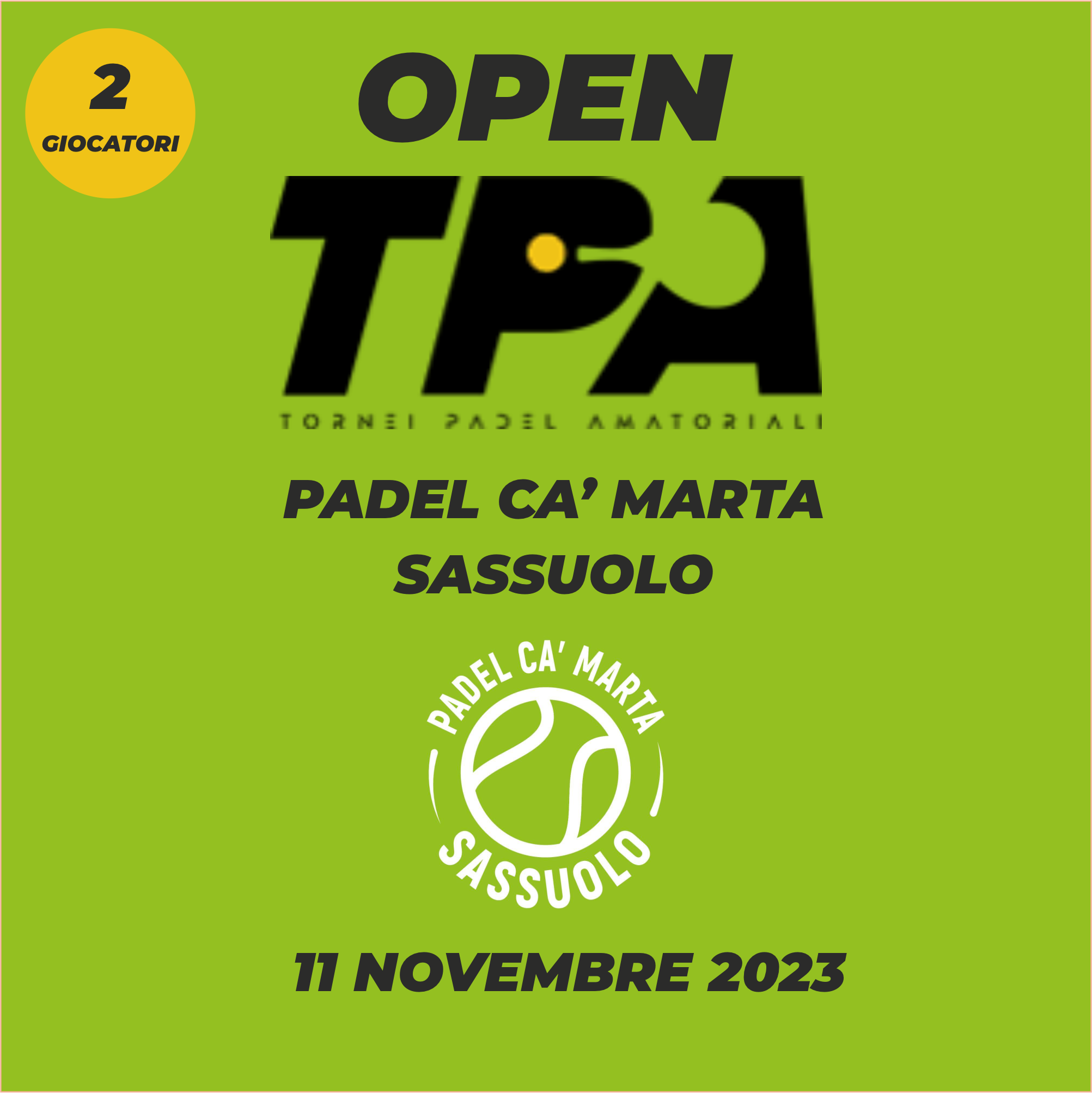 ISCRIZIONE 2 GIOCATORI - OPEN "CA MARTA" SASSUOLO