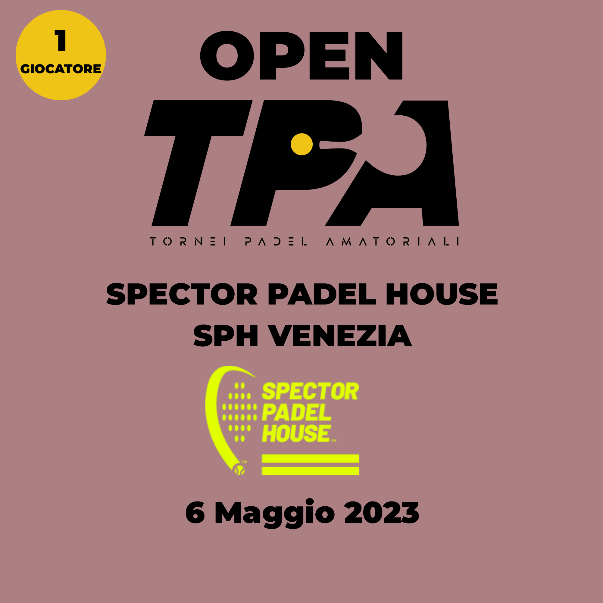 ISCRIZIONE 1 GIOCATORE - OPEN "SPECTOR PADEL HOUSE SPH" VENEZIA